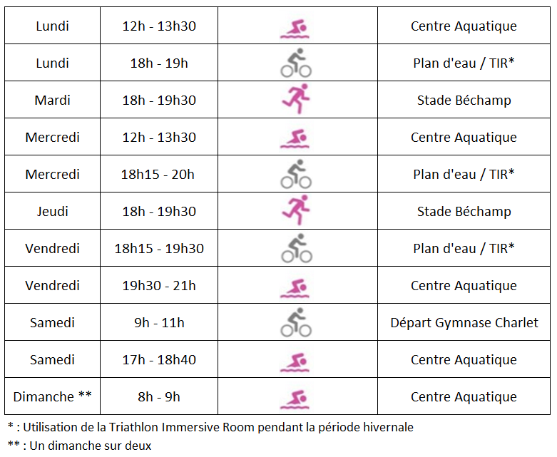 Des entraînements exceptionnels pourront être proposés durant les vacances scolaires.