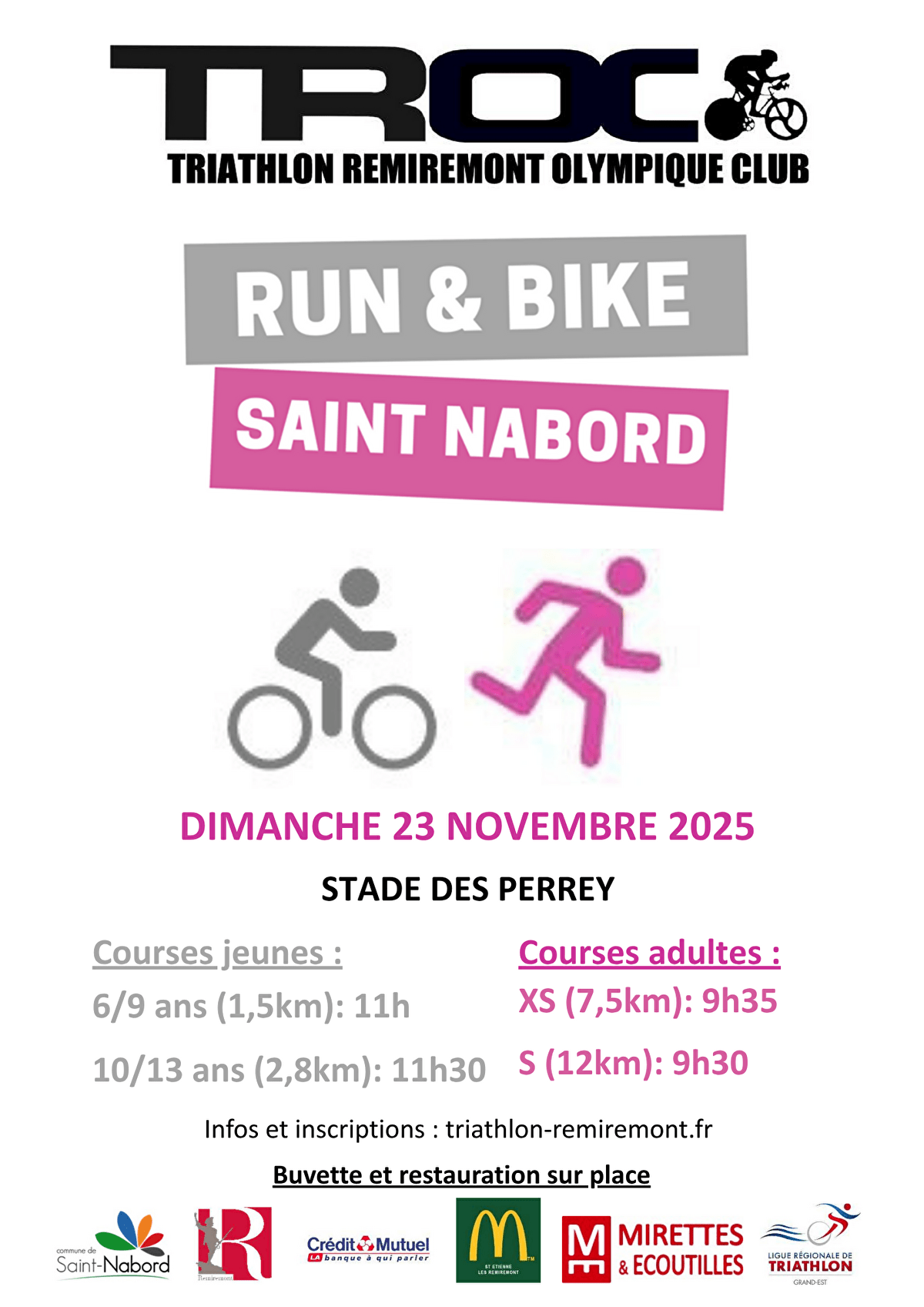 Informations 27/12/2025 La troisième édition du Run & Bike de Saint-Nabord se déroulera le dimanche 23 Novembre au stade des Perrey